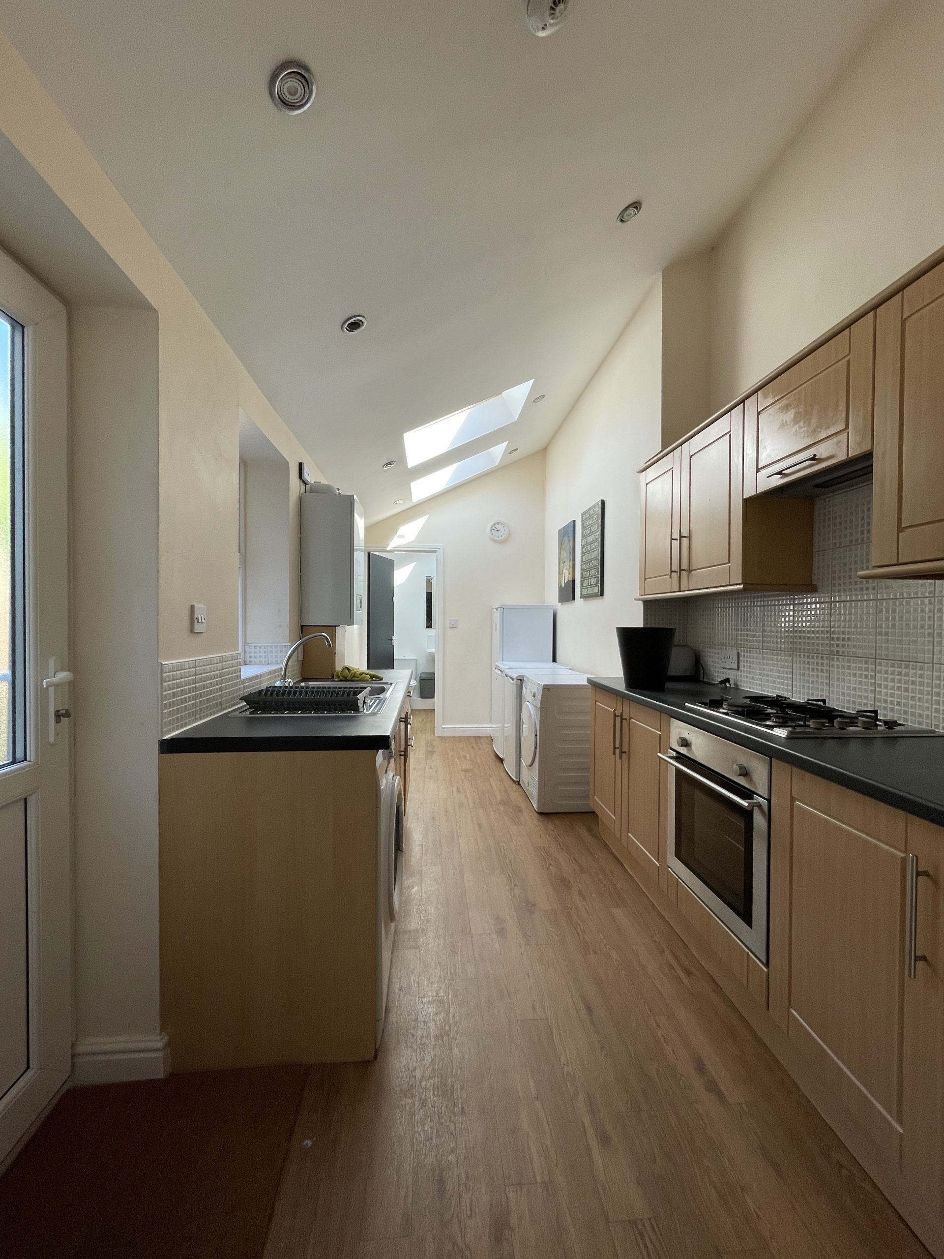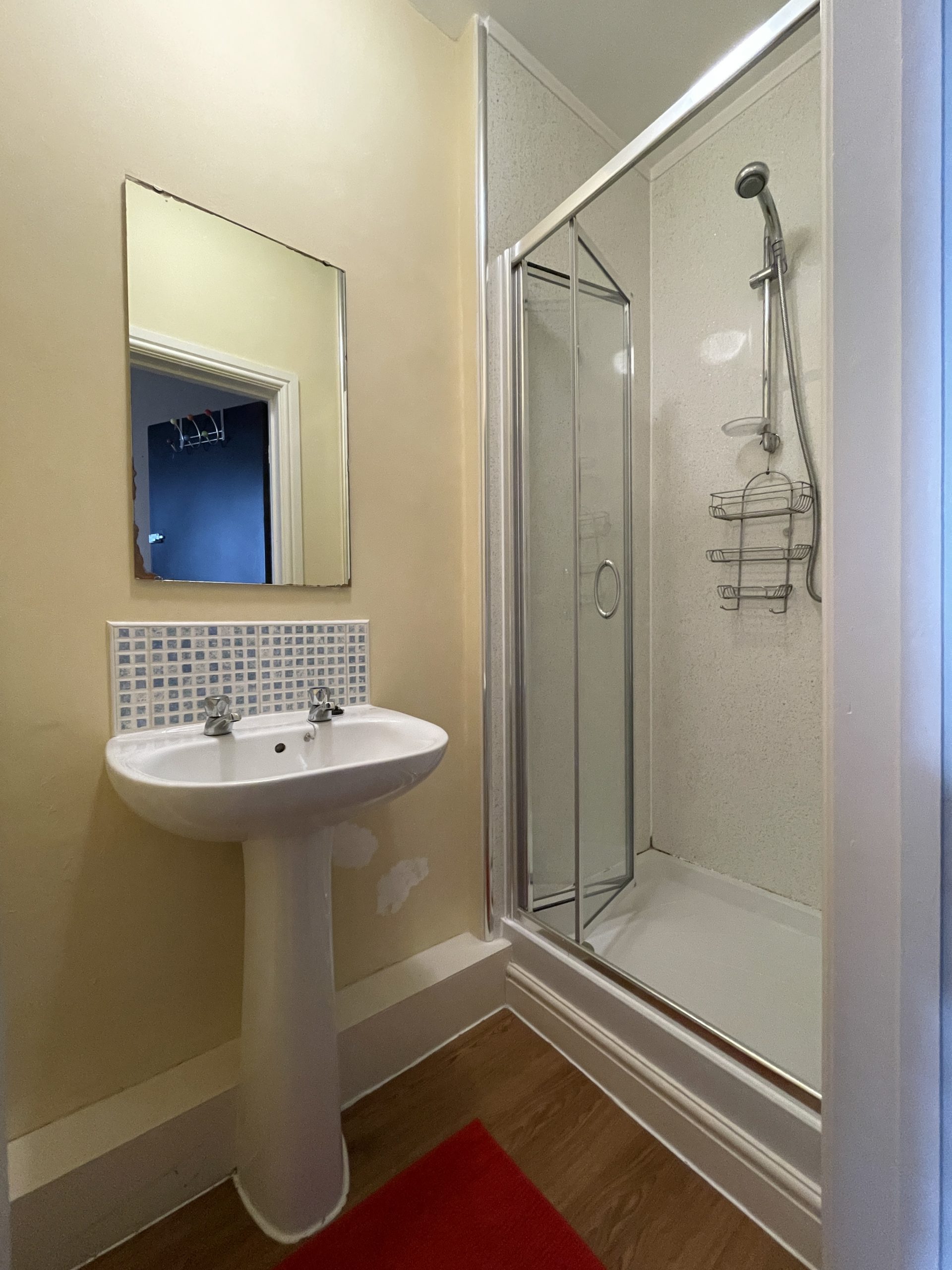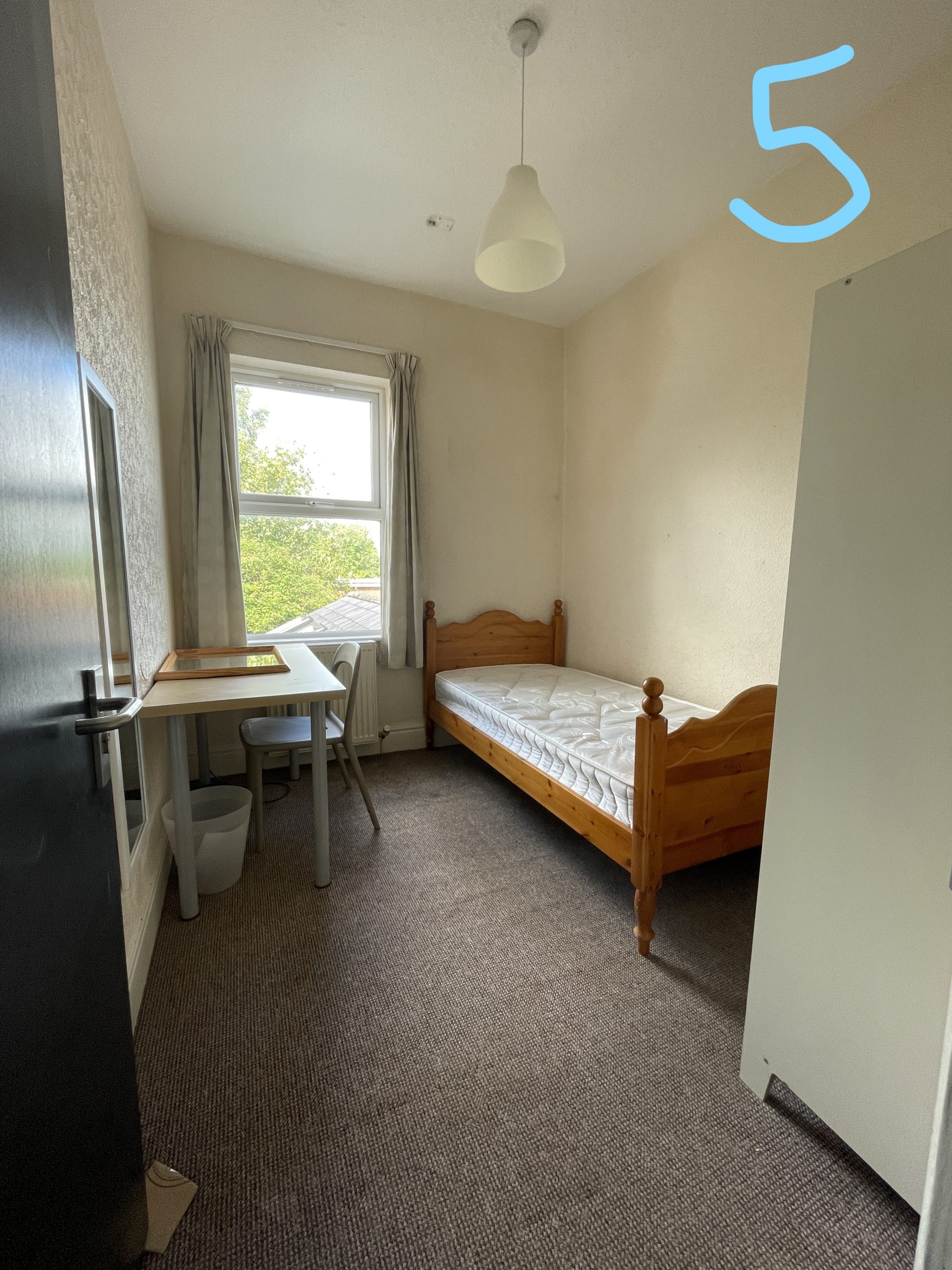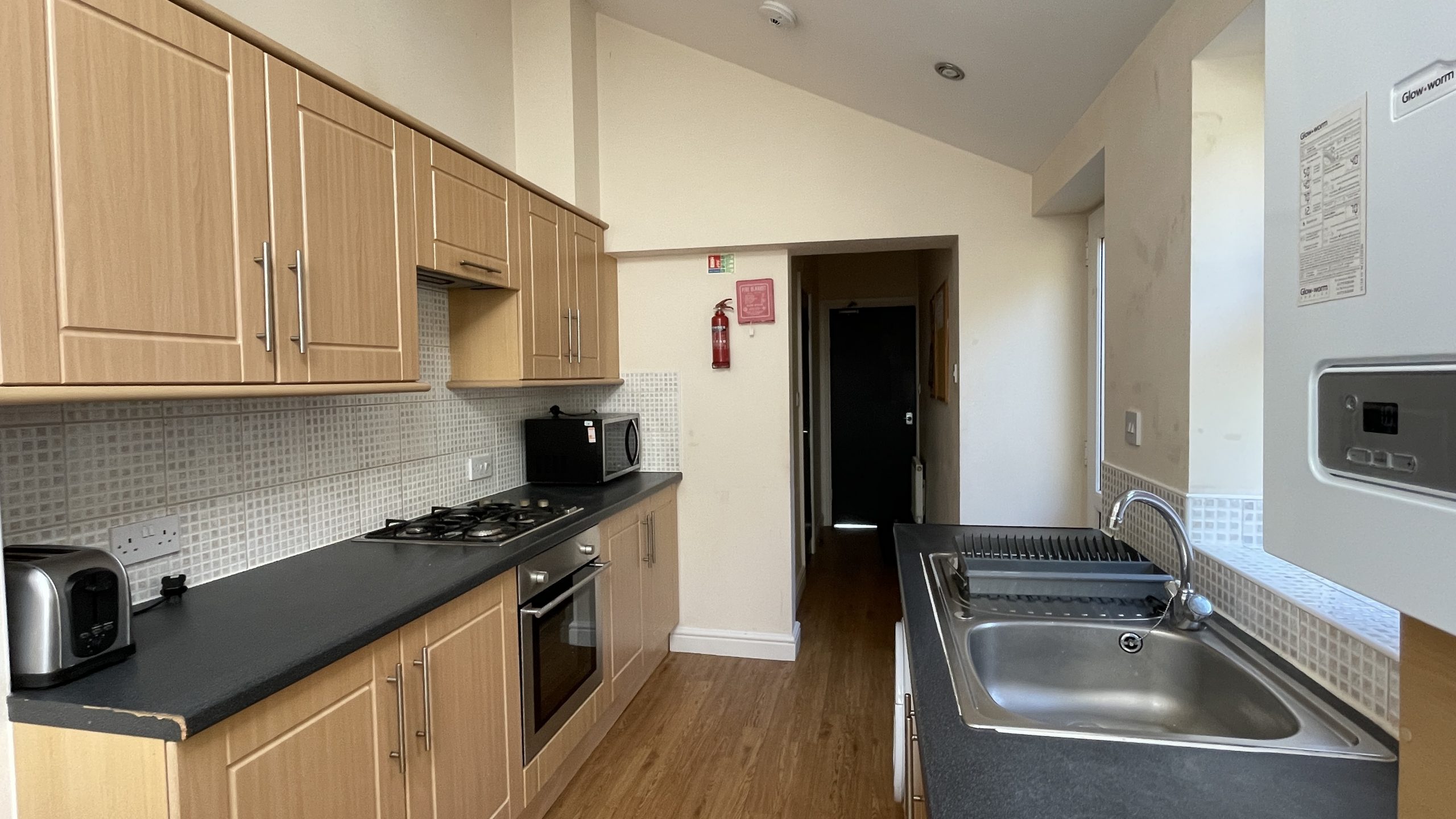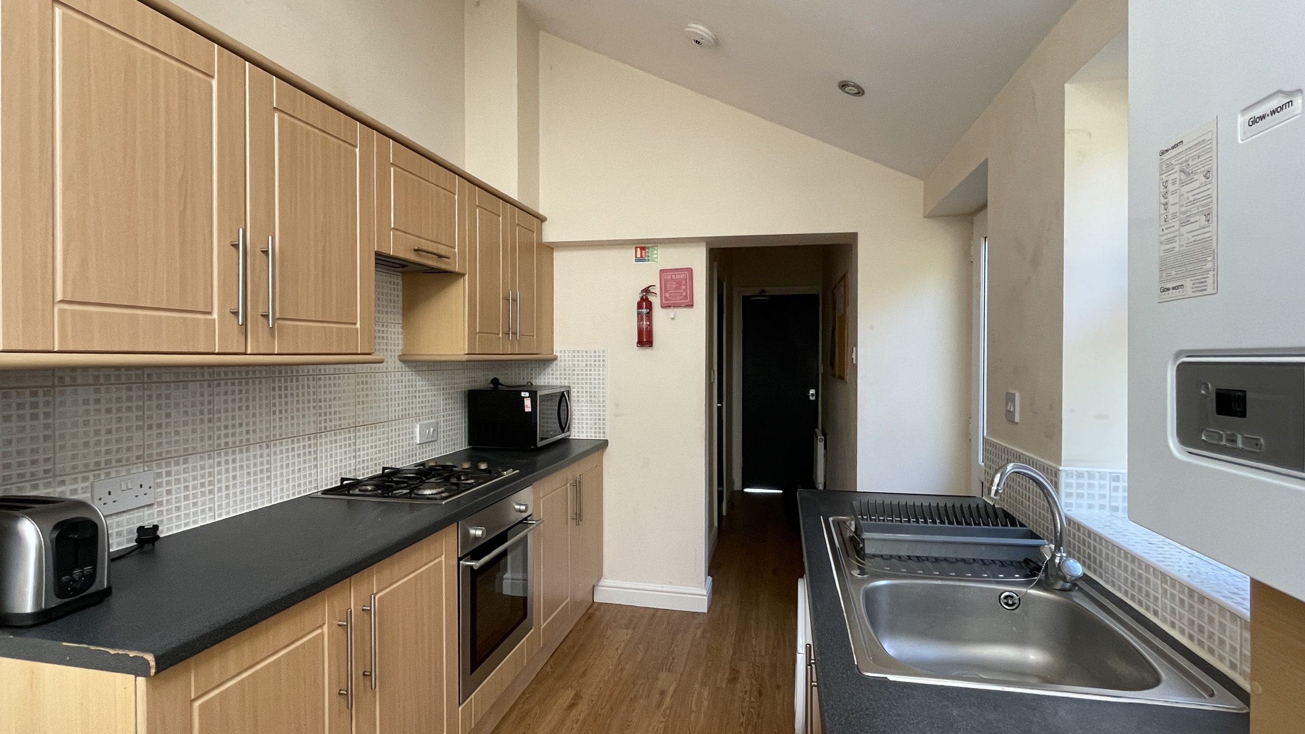No 8 was converted to student use a few years back and has 5 single bedrooms. Four upstairs and one downstairs where there is also a common room, kitchen, bathroom (with shower over bath) and a second separate shower-room.